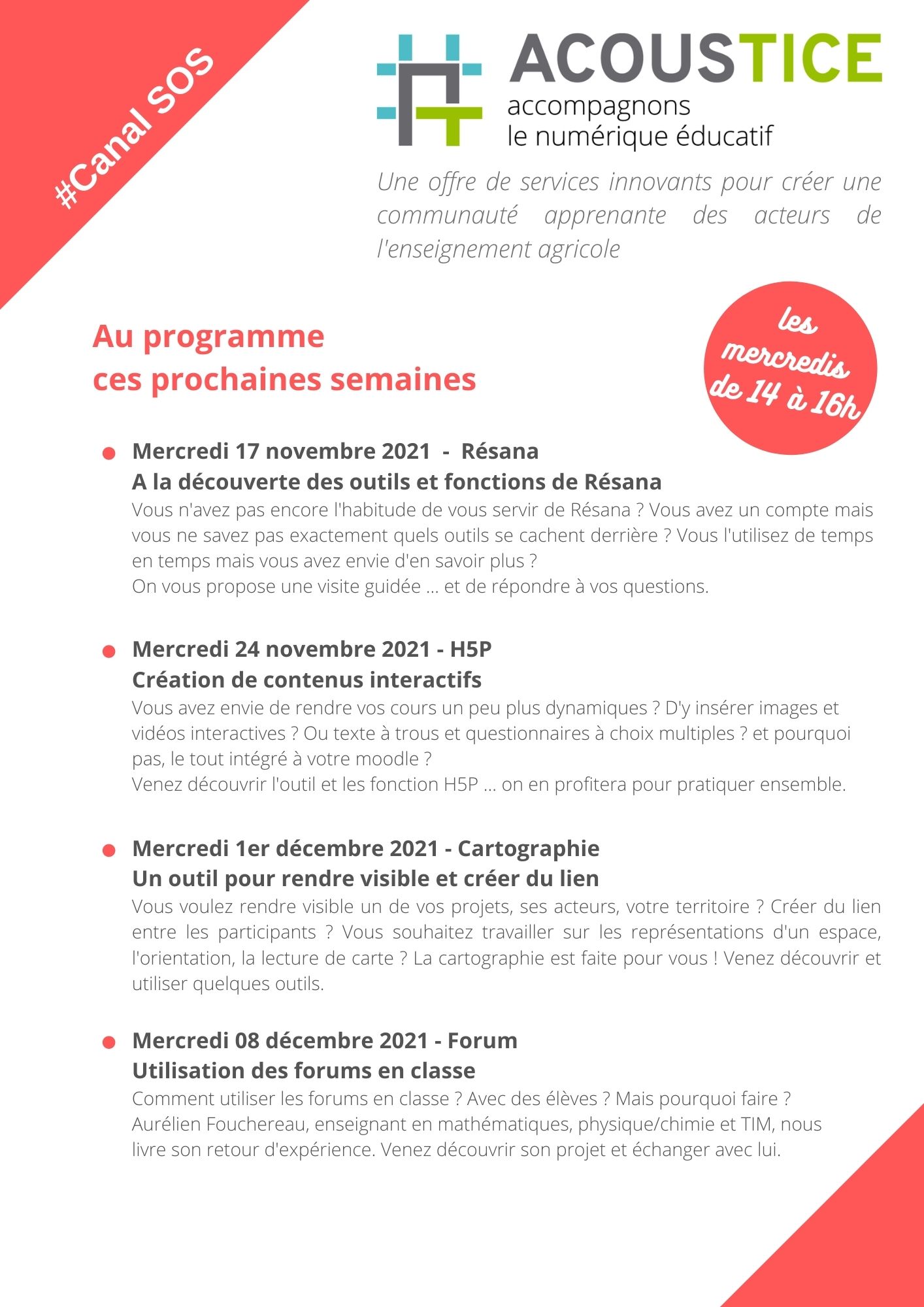 Voici le programme du #Canal SOS pour les dernières semaines de l'année,. Notez vite les dates dans vos agendas, c'est simple c'est tous les mercredis de 14h à 16h ;)